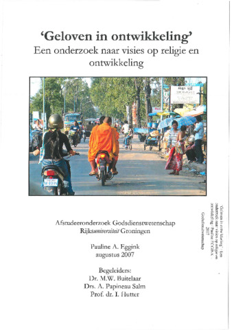 Eggink, Pauline A. (2017) 'Geloven in ontwikkeling' Een onderzoek naar visies op religie en ontwikkeling. Master thesis, Master Godsdienstwetenschap.