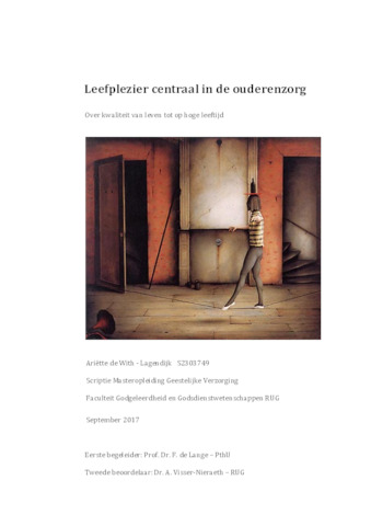 zorg. Het concept leefplezier wordt nader geanalyseerd. Er wordt onderscheid gemaakt tussen plezier in een moment en duurzaam plezier. Er worden suggesties gedaan voor aanvullingen aan de huidige zorgverlening om ouderen te ondersteunen tot op hoge leeftijd plezier in hun leven te
