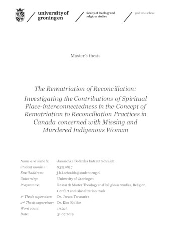 Schmidt, Januschka (2019) The Rematriation of Reconciliation. Master thesis, Master Research Master Theologie en Religiewetenschappen.