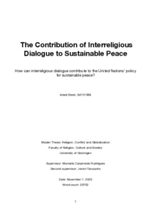 Breet, Aniek (2024) The Contribution of Interreligious Dialogue to Sustainable Peace. Master thesis, Master Religion Conflict and Globalisation.
