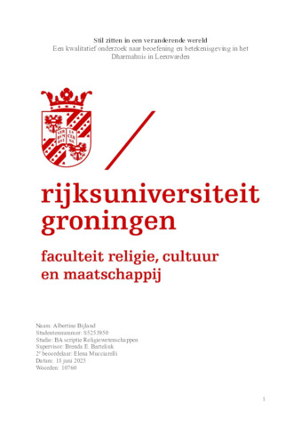 Stil zitten in een veranderende wereld: Een kwalitatief onderzoek naar beoefening en betekenisgeving in het Dharmahuis in Leeuwarden.