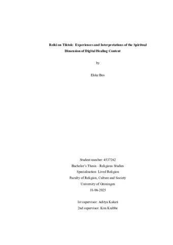 Bos, Elske (2025) Reiki on Tiktok: Experiences and Interpretations of the Spiritual Dimension of Digital Healing Content. Bachelor thesis, Bachelor Religiewetenschappen.